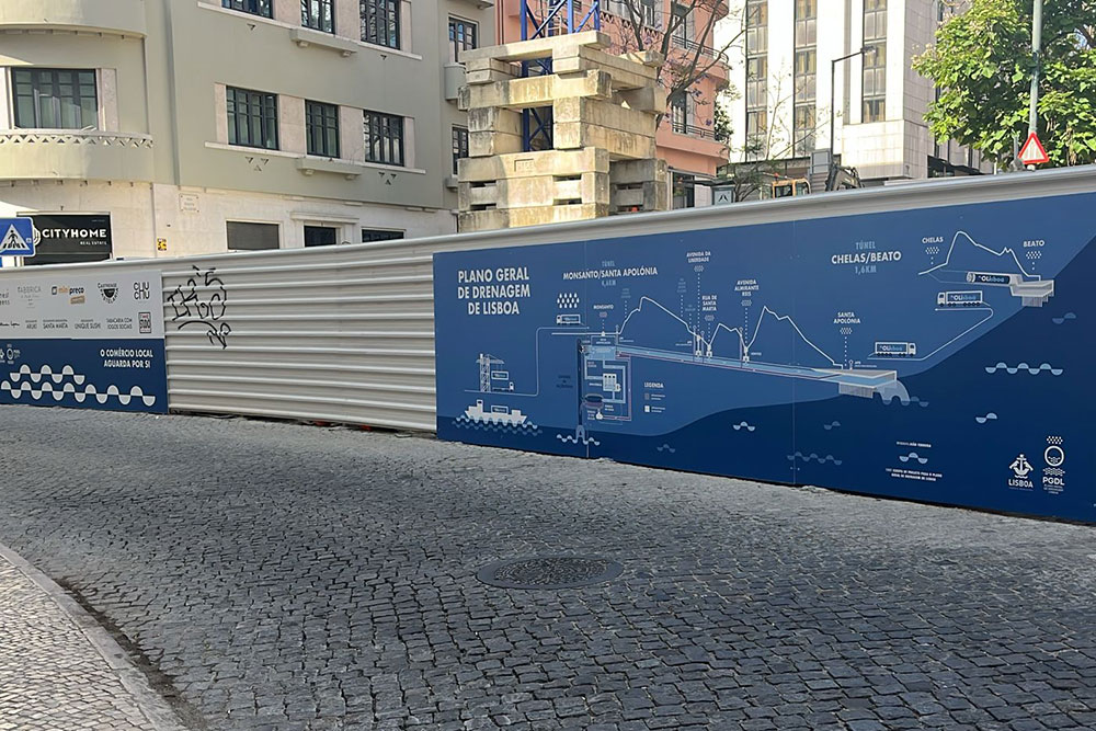 - A Câmara de desvio de caudal foi já construída na Rua de Santa Marta e o poço de vórtice encontra-se em construção na confluência entre esta Rua e a Rua Barata Salgueiro.